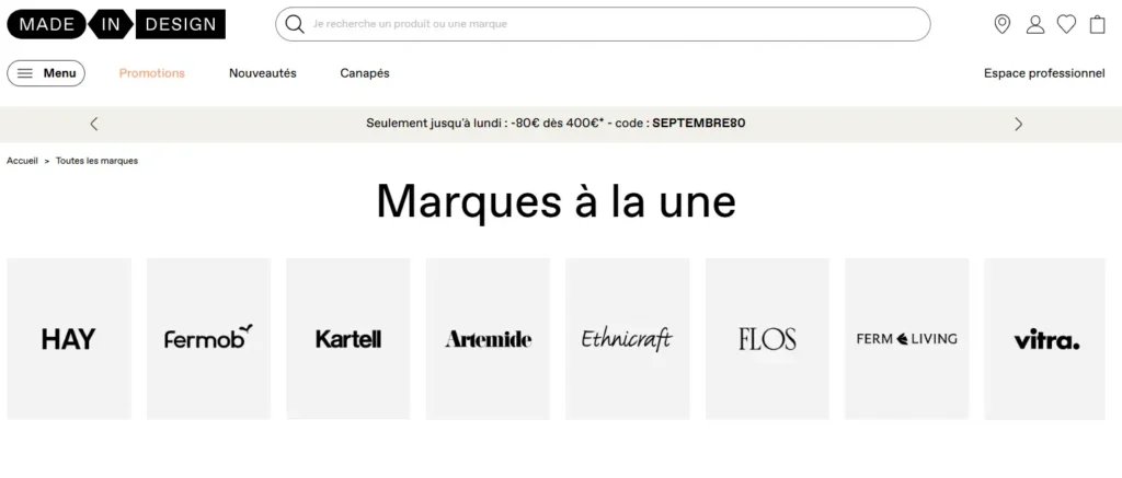 Le site Made in Design, fondé en 1999, est devenu une référence européenne en matière de mobilier contemporain, en réunissant des milliers de créations issues de marques et de designers reconnus. Par exemple, des canapés aux lignes scandinaves, des luminaires futuristes ou encore des fauteuils iconiques y sont accessibles. Avec plus de 27 000 références, l’enseigne s’adresse aussi bien aux passionnés de décoration qu’aux simples curieux souhaitant améliorer leur cadre de vie.